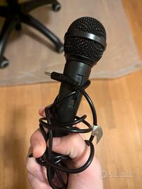 Vendo microfono dinamico con cavo integrato, perfetto per karaoke, eventi o registrazioni amatoriali. Funziona perfettamente ed è stato usato pochissimo. cavo è lungo e permette una buona libertà di movimento. Compatibile con dispositivi dotati di ingresso adeguato.