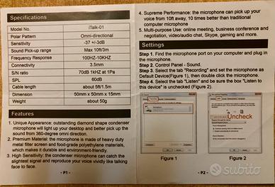 Caratteristiche: Design compatto in metallo con un raggio di captazione vocale che può estendersi fino a 3 metri.