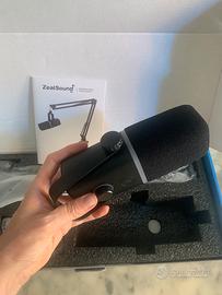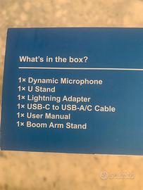 Microfono dinamico XLR/USB, microfono per *Phone, Set di microfoni per Telefono PC, microfono con luce RGB, mute, jack per cuffie, supporto con braccio