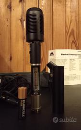 microfono particolarissimo e dal suono caldo e brillante. con la batteria interna funziona come un microfono a condensatore