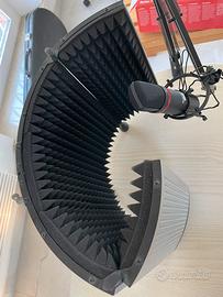 Microfono professionale per registrare voce + pannello fonoassorbente portatile , uno studio di registrazione portatile per registrare voce ovunque tu sei