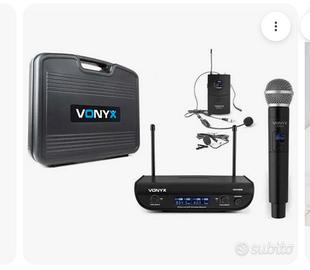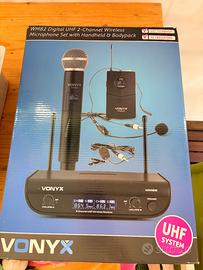 Vonyx WM82C Digital - Sistema Radiomicrofono UHF, 2 Canali, 1x Microfono Headset & Trasmettitore Tascabile/1 x Microfono a Mano, Fino a 50 m di Copertura, Valigia di Trasporto
