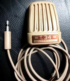 Vendo introvabile microfono piezoelettrico vintage originale GELOSO T34 testato e perfettamente funzionante. Dispone di jack come da foto idoneo per magnetofoni serie G257 e simili.