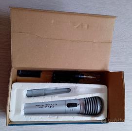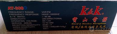 Microfono K&K modello AT-308, colore grigio, in ottime condizioni. Incluso ricevitore wireless (funziona a pile) e un trasmettitore con piccola antenna. Ideale per karaoke, eventi o uso domestico.