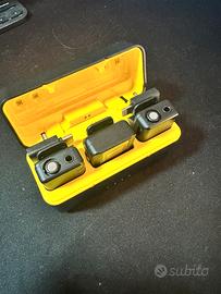 Il microfono con una clip per colletto leggero e compatto può essere facilmente indossato e reso invisibile per la registrazione video. Uno schermo LCD mostra le modalità di esportazione, il volume, i livelli della batteria, lo stato della connessione, la cancellazione del rumore e altre informazioni. È possibile monitorare la registrazione in tempo reale tramite il jack audio da 3,5mm