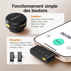 Microfono lavalier wireless, registrazione ad alta sensibilità, tripla riduzione intelligente del rumore, latenza estremamente bassa di 25 ms, 48 kHz/16 bit, portata di registrazione 50m. NUOVO mai utilizzato per mancato regalo. Ancora nell'imballo originale