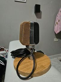 Propongo raro microfono dinamico Meazzi M12, icona del design italiano degli anni '60 prodotto a Milano. Questo modello è celebre tra gli estimatori per la qualità della sua componentistica interna (capsula di derivazione AKG). Dettagli dell'oggetto: Condizioni Estetiche: Il microfono si presenta in perfette condizioni. La griglia dorata è impeccabile, priva di schiacciamenti o ossidazione. Anche il corpo e le scritte originali sono eccellentemente conservati. Cavo: È presente il cavo originale, che si presenta senza spinotto terminale. Una condizione ideale per chi desidera personalizzarlo con il connettore più adatto (XLR o Jack) per il proprio setup. Specifiche: Alta impedenza (50.000 \Omega), tipica della produzione professionale dell'epoca. Un pezzo da collezione imperdibile per amatori del vintage e studi di registrazione.