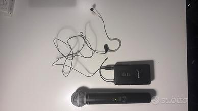 Vendo sistema microfonico wireless professionale Shure serie SLX, ideale per eventi, conferenze, presentazioni, fitness e utilizzo professionale. 🔹 Contenuto: •Microfono palmare wireless Shure SLX2 con capsula SM58 •Trasmettitore bodypack Shure SLX1 •Microfono headset (archetto) •Custodia rigida + accessori originali 🔹 Stato: •Tutto testato e perfettamente funzionante •Display e LED attivi (vedi foto reali) •Normali segni d’uso ma perfetto a livello tecnico