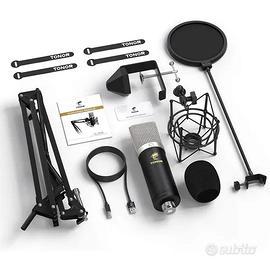 TONOR Microfono USB, PC Mic Cardioide Condensatore con Frequenza di campionamento, Braccio Supporto Antiurto per Streaming, Registrazione, Gioco, Podcasting, Voice Over, YouTube