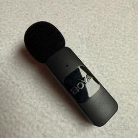 Microfono wireless Boya usb C. Funzione riduzione del rumore. Usato solo una volta, presenta la parte lucida un po’ segnata.