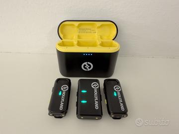 Hollyland Lark M1 Sistema di Microfoni Wireless Lavalier composto da 2 microfoni e 1 ricevitore. Ideale per video, interviste, podcast e creazione contenuti. Ottima qualità audio, riduzione del rumore integrata e connessione stabile. Completo di custodia di ricarica, cavi originali e custodia rigida.