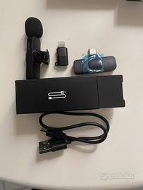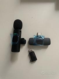 Vendo microfono wireless lavalier con ricevitore USB-C, ideale per smartphone Android e iPhone più recenti.