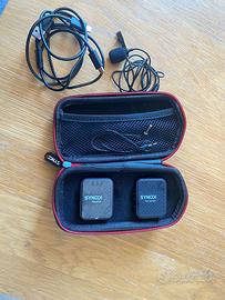 Microfono Wireless Lavalier SYNCO completo di tutti gli accessori: - ricevitore - Trasmettitore - Microfono Lavalier - Cavi di ricarica - Windscreen - Custodia - Usato poco, perfettamente funzionante. 40€ Consegna a mano zona Bologna o spedizione a carico dell’acquirente.