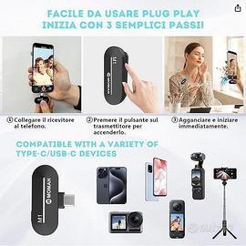 Microfono Wireless Type 2,4 GHz con Interfaccia Tipo C per iphone 15 USB-C Android Smartphone, Tablet, Laptop per YouTube, Vlogging, Microphone-Wireless-Smartphone-Pad.