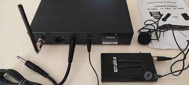 Sistema completo di microfono wireless in condizioni pari al nuovo (è stato usato 2/3 volte causa inutilizzo). Nemmeno un graffio e anche la confezione originale è perfettamente nuova con tutti gli accessori forniti. Il ricevitore deve essere collegato ad una normale presa tramite l'alimentatore (incluso) e il trasmettitore alimentato con 2 normalissime pile AA. Segnale perfetto che non risente di disturbi ed interferenze (testato fino a 100m.) La valigetta di cartone comprende Microfono Voce, Body Pack, Ricevitore e altri accessori. OTTIMO AFFARE!!!