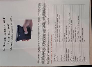Microscopio digitale portatile LCD 5.0 MP - 20X, 500X... uso per molteplici scopi professionali e non.