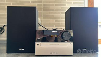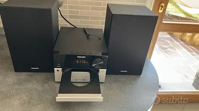 Vendo Radio Philips con lettore CD, telecomando, USB e due casse acustiche. Utilizzato pochissimo e perfettamente funzionante. •Riproduce CD, MP3 tramite USB, e include radio FM e ingresso audio. •È dotato di altoparlanti Bass Reflex per bassi potenti. •Include la funzione Digital Sound Control (DSC) con impostazioni audio pre-impostate). •La potenza in uscita è di 15 W