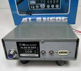 Ricetrasmettitore Veicolare Citizen Band 27 Mhz modello Alan 68S codice originale C025.02, canali 34+34 Am Fm con potenza 4w, Omologato per i punti 1-2-3-4-7-8. Display analogico azzurro, staffa in dotazione, tasti e manopole in alluminio, microfono robusto, alimentazione 12 volt.