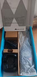 Ricetrasmittente Midland vendesi per errato acquisto (mi serviva un VHF marino ma questo non lo è). Quindi mai usato. Specifiche tecniche Canali G9 PRO (banda tradizionale) 8+16 preprogrammati (PMR446) + 1~69 (LPD) G9 PRO (nuova banda) 16+16 pre-programmati (PMR446) + 1-69 (LPD) Generazione delle frequenze sintetizzatore PLL Copertura di frequenza PMR446 banda tradizionale 446.00625 ÷ 446.09375MHz PMR446 nuova banda 446.00625 / 446.19375 MHZ LPD 433.075 - 434.775MHz Passo Canalizzazione 12.5 KHz (PMR446); 25 KHz (LPD) Alimentazione 6+/- 10% VCC Temperatura operativa da -20° a +55° Dimensioni (senza antenna) 64 (L)x 126 (A)x36(P) mm Peso (senza batterie) 150gr Ciclo di funzionamento TX 5%, RX 5%, stand-by 90% Categoria di appartenenza B