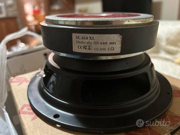Vendo midrange GME da 500 watt nuovi mai usati aperti soltanto per gardarli e poi per fare le foto. Diametro 16 cm potenza 500 watt resistenza 4ohm.
