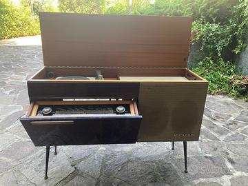 Fantastico mobile vintage radio/stereo della Minerva modello Trieste 627/1 a valvole funzionante. La ditta Minerva fu fondata nel 1919 da Wilhem Wohleber a Vienna e nel 1927 riunì tutta la produzione sotto il nome Minerva.