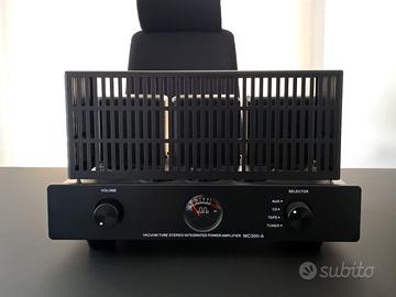 Questo MC300A è un amplificatore integrato che utilizza le gloriose e leggendarie valvole 300B. La qualità costruttiva è piuttosto elevata e questo, unito al peso elevato, conferisce la sensazione di un componente solido, non di un giocattolo, come molti altri amplificatori valvolari economici sul mercato. Il cabinet in alluminio lavorato a CNC è solido e con una finitura di gran classe. Il VU meter centrale regala un tocco vintage.