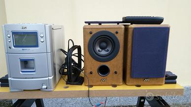 Vendo mini Hi-Fi stereo JVC UX-T250R con telecomando, lettore CD, Sintonizzatore + antenna, lettore/registratore di Musicassette e coppia di diffusori, potenza max 14+14w su 4 Ohm.
