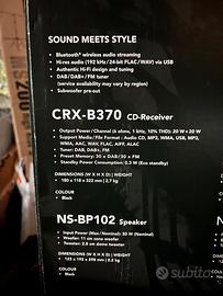 Vendo ottimo Mini hi-fi Yamaha MCR-B270D (CRX-B370D CD-Receiver, NS-BP102 Speaker) Come nuovo, in garanzia fino a marzo 2027. Bluetooth wireless audio streaming Hi-res audio (192 kHz / 24-bit FLAC / WAV) via USB Authentic Hi-Fi design and tuning DAB / DAB+ / FM tuner (service availability may vary by region) High-quality Burr-Brown DAC Subwoofer pre-out