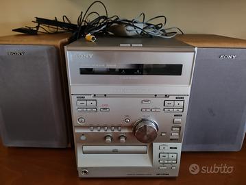 Mini impianto hifi Sony completo, radio, cassette, CD, telecomando, tutto funzionante.