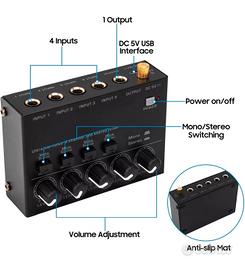 Audio Mixer Line Mixer, Studio Recording Stereo Line Mixer a 4 canali