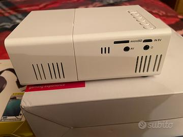 Vendo mini proiettore a led dotato di telecomando, cavi per collegamento,alimentatore, e con un ricevitore wireless per trasmettere da smartphone o pc con il proiettore.