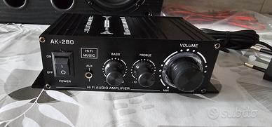 Vendo come da foto, mini stereo creato x mio figlio, ma siccome non era molto interessato( non ascolta molto la musica)... Ho deciso di cederlo, completo di casse McGrey piu mini amplificatore ( si può collegare mp3 o eventuale lettore cd).. Piu cavi e 4 banane x attacco posteriore alle casse.