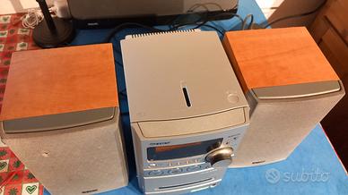 Piccolo impianto stereo Sony, mod. HCD-NEZ3, completo di casse e telecomando, radio ok, lettore cd ok, la cassetta parte ma poi si blocca, piccolo danno sulla tela di una cassa (vedi foto)...guarda altre radio sul mio profilo...