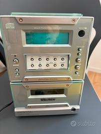Mini stereo compatto, lettore cd e radio perfettamente funzionanti, lo sportellino della cassetta risulta bloccato quindi non ho potuto verificarne il funzionamento. Venduto senza casse.
