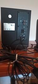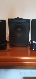 mini sub con casse dedicate..per PC..ma suona benissimo anche collegando un uscita audio jack da 3,5 LINE del controllo volume a lettori MP3 /DVD portatili/TV..ecc..potente (26 W)..bassi profondi regolabili...alti e medi nitidi e squillanti..completo di controller del volume e tutti i cablaggi..semplicissimo da collegare..suona benissimo..come nuovo ..neanche un graffio