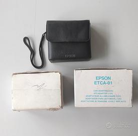 vendo mini TV Epson funzionante, misure 10 X 9 cm, con alimentatore e car adapter Epson ETAA-01 , confezioni originali, per collezionisti/appassionati, slot per pile non incluse