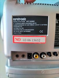 Mini televisore portatile con radio integrata. - Design compatto e facile da trasportare. - Funzione radio AM/FM. - Selettore canali TV (VL, VH, U). - Controllo volume. Non so se funziona non ho l'alimentatore