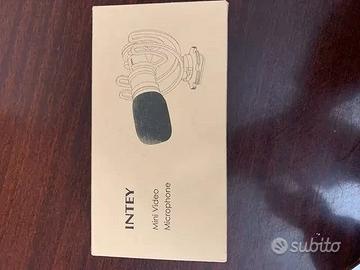 Mini microfono INTEY per video, usato pochissimo e in perfette condizioni, completo di accessori originali (supporto, parabrezza antivento e cavo).