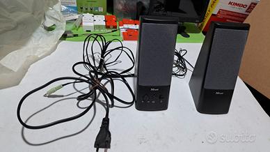 Vendo x inutilizzo, mai usate, coppia minicasse amplificate x computer o x telefono o x x tv o x altri usi, funzionano a 220 Volt, hanno pulsante accensione, pulsante volume e uscita x cuffie.