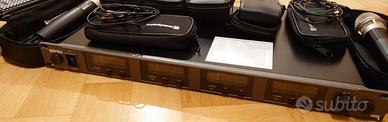Ricevitore UHF a 4 canali professionale Mipro compreso di due radiomicrofoni palmari e quattro bodypack con due archetti e due pulci.