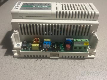 Miscelatore/Alimentatore per sistemi audio o audio/video dotato di 1 ingresso compatibile con tutte le pulsantiere da esterno con tecnologia Simplebus 1 e 4 uscite per il collegamento al massimo di 100 dispositivi a scelta tra citofoni e videocitofoni con tecnologia Simplebus 2. E' dotato di led per la segnalazione di corto-circuiti sulle linee e di una uscita in tensione continua per l'alimentazione di dispositivi aggiuntivi come gli scambi art. 1224A, 1424 e/o relè attuatore art. 1256. Consente le funzioni di intercomunicante tra utenti. Corredato di 4 morsetti per la terminazione di linea art. 1216. Dimensioni (L x H x P): 140 x 140 x 67mm (8 moduli DIN).