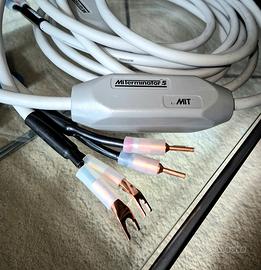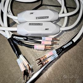 MIT Terninator 5 Made in USA Mitici cavi High-End per diffusori ottimizzati con connettori a vite intercambiabili a banana e a forcella torniti in puro rame OFC N.02 connettori Lunghezza cadauno 3.70 metri Ottime condizioni Coppia con connettori € 330 Coppia senza connettori € 300