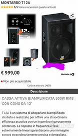 come da foto vendo due mobtarbo t12 a 500 watt continui ,3 vie ...qualità suono magnifica la maggior parte delle casse acustiche sono 2 vie queste mobtarbo generano un suono di estrema qualità con le medie frequenze distinte...non sono per tutti..se abbinate a dei subwoofer possono dare un suono di qualità al vostro impianto audio .....non vendo a tutti ..solo a chi conosce il tipo di cassa acustica a 3 vie.. multistrato di betulla e componenti custom la rendono preziosa ..ai tempi costava 1000€ ciascuna sono fuori produzione ultimi esemplari ..prova audio e ritiro Milano porta romana