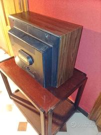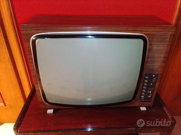 Effetto legno,sano e ben messo.Funzionava poichè utilizzato con modulatore rf .Ma adesso non si accende ,a volte si .Venduto come da foto .Bellissimo di estetica e facilmente riparabile.Audio molto buono non rovinato.Prezzo 100 euro compresa spedizione italia ed estero europa.Ne ho tanti a breve in vendita televisori,videoregistratori vhs anni 80 (primissimi)betamax o altri .