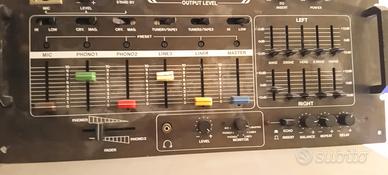 Mixer 4 canali con effetti eko , 2 tipi di ingresso phono, Magnetico o piezoelettrico, 2 Wmeter, ingresso microfono , uscita cuffia con preascolto, buone condizioni vendo a 30 euro causa inutilizzo. posso spedire o consegna a mano zona Chieti . NON VENDO CON SUBITO.IT