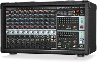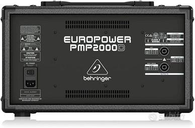 Il potente amplificatore in classe D Behringer Europower PMP2000D dispone di 2000 watt (1000 watt per canale) per pilotare mains e monitor per gli eventi in club di dimensioni discrete e piccoli festival all'aperto. Quattordici canali (6 mono e 4 stereo) e nove preamplificatori microfonici IMP forniscono abbastanza ingressi per una band al completo. E un ingresso ausiliario stereo permette di riprodurre musica da uno smartphone tra i veri set. Il Behringer PMP2000D dispone di 25 effetti digitali di prima classe Klark Teknik, tra cui riverbero, delay e pitch shifter.