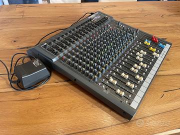 Vendo mixer analogico dotato di 12 canali microfonici e 4 canali stereo di linea, con fader da 100 mm, equalizzazione a tre bande sui canali mono, mandata AUX pre/post, bus MIX e SUB e sezione master con doppio fader. Il mixer è completamente funzionante e testato in tutte le sue parti: canali, EQ, fader, meter e uscite sono operativi. È stato utilizzato in precedenza in una chiesa ed è in ottime condizioni generali. Viene venduto con il suo alimentatore originale incluso, pronto all’uso. Foto e video aggiuntivi disponibili su richiesta. Prezzo trattabile.