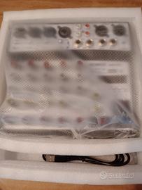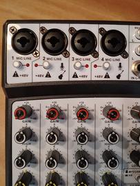 Mixer audio con 5/6 canali. Ideale per piccole produzioni o live. - Ingresso microfono/linea con alimentazione phantom +48V. - Connessione USB/MP3. - Uscite bilanciate e uscite cuffie. - 99 Effetti DSP integrati. - Funzione registrazione scheda audio direttamente su chiavetta Usb (molto comodo) Questo è un modello che funziona molto bene per eventi live, per home recording e Karaoke. Per il prezzo un piccolo gioiellino! Il prezzo dell'offerta è già il minimo che posso fare, quindi non è trattabile!