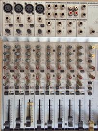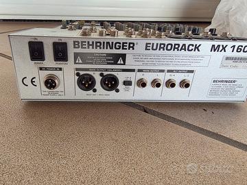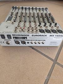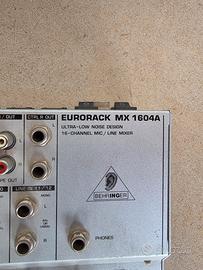 Mixer audio Behringer Eurorack MX1604A. Usato e funzionante. Cavo alimentazione non incluso. Dispone di 4 canali mono (con ingressi XLR) e 4 canali stereo. Presenta una struttura a bassissimo rumore per una qualità audio ottimale. Include uscite separate per il mix principale (Main Mix), la sala di controllo (Control Room) e le cuffie. Offre EQ a 3 bande, alimentazione phantom e funzioni di muting/routing. Astenersi perditempo o affaristi.