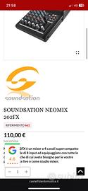 Vendo Soundsation Neomix-202FX, mixer compatto a 6 canali ideale per performance live, registrazioni in home studio o semplicemente per gestire i vostri strumenti e microfoni con qualità professionale.